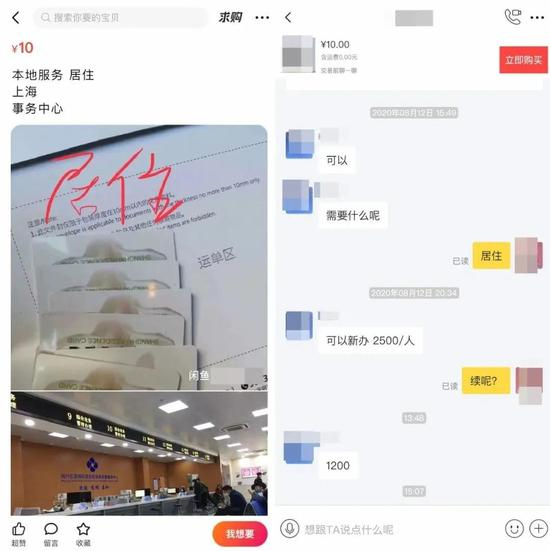 2500元,只需一张身份证,就可以新办一张上海的居住证,闲鱼上仍旧充斥着办证的“牛皮癣”广告。