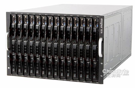 NX7140D在7U的空间里,可安装14个计算刀片,42U标准机柜内可配置672颗处理器核心,NX7140D的每个刀片都配有3块2.5寸热插拔SAS、SATA硬盘,这种设计可以支持RAID5等更高级别的RAID技术,同时配合了N+1全冗余电源设计。