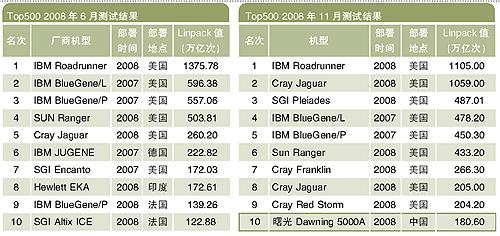 假如一切都能按期进行,曙光5000A进入Top500十强是十拿九稳的事,但是国际上高性能计算机的发展速度非常快。2007年11月,Top500的十强门槛是82.16T;而到了2008年6月,门槛已经提高到106.1T,足见高性能计算竞争之激烈。推迟半年,给曙光5000A冲入十强带来了很大的不确定性。本着实事求是的精神,曙光尽管没有放弃,但也不再公开表示冲击十强了。