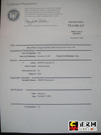 除了国外对字库作为软件保护的先例外,不论是中易还是方正电子,他们持此观点的另一个重要原因就是他们都取得了国家版权局颁发的“计算机软件著作权登记证书”。