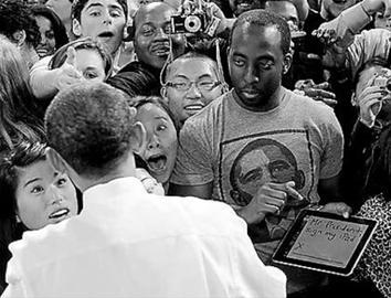其他支持者只要能和总统握个手或者要个普通纸上的签名就很满足了,而卡恩却拿出一个电脑,屏幕上写着“总统先生,在我的iPad上签字”。当时一名皱着眉头的保镖摇了摇头,对卡恩说:“不行。”但总统却微笑走上前,用指尖在上面签了名。