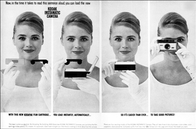 1963年,柯达开发出革命性产品——傻瓜相机“instamatic”系列相机。从1963年至1970年,共有超过5000万架傻瓜相机被售出。
