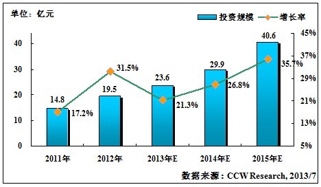 在本届大会上,主办方计世资讯副总经理郭畅发布了《2012-2013年移动医疗应用现状及发展趋势研究报告》,向大家介绍了移动医疗的市场环境、应用现状、市场规模、未来发展趋势等。报告指出,2012年中国移动医疗市场规模达到19.5亿元。对于移动医疗的发展而言,2012年是一个有意义的转折点,2012年移动医疗市场呈现爆发式的迅猛增长,比2011年增长31.5%。2013年在2012年的基础上继续保持着高速的增长,市场规模将达到23.6亿元,比2012年增长21.3%。见下图。经过多年的培育和发展,移动医疗已进入快速启动阶段,未来几年将步入高速成长期。