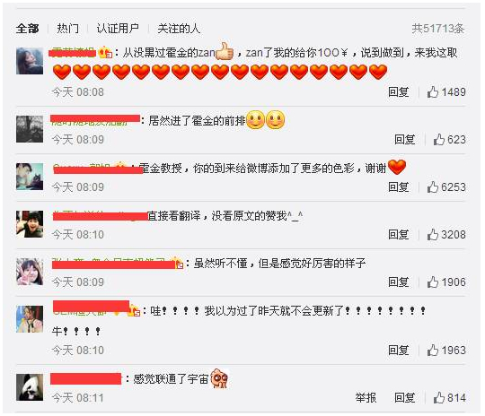 霍金教授的第一条微博一出,霍金的中国粉丝就彻底疯狂了..。。