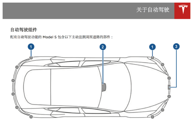 首先我们来了解一下特斯拉汽车的自动驾驶原理,自动驾驶简单的来解释就是有传感器,控制器,和执行器组成。传感器负责感知周围的环境把信息传递给控制器,控制器结合各传感器的数据产生决策数据告诉执行器,让执行器执行控制请求。这样就可以通过感知路面的数据控制汽车自动行驶了。特斯拉的自动驾驶系统(Autopilot)传感器主要有以下几部分组成: