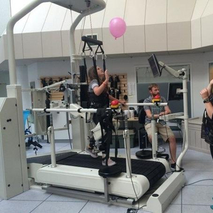 这是目前范围最大的关于评测机器人辅助脑瘫儿童康复效果的研究项目。下图,是Slessor正在Lokomat上进行训练的动态图。