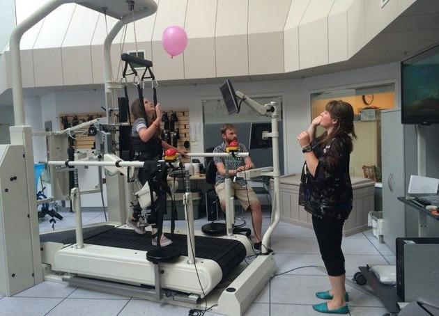 Slessor参加的是加拿大阿尔伯塔大学正在研究的一个项目,用来评测一个名叫“Lokomat”的机器人步法训练系统对脑瘫儿童复健的作用。脑瘫儿童的复健与成人不太一样,不仅因为儿童体型更小,还要另外考虑他们的心理动机和态度,就像学校教育要考虑的一样。