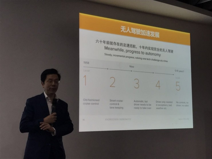 目前看得非常清晰,而且全球达到共识就是无人驾驶。有时候你要做一个科幻型的东西,需要万事俱备,天时地利人和才能推动。但是一旦开始动它就不得了。就像以前我们的移动互联网改造了整个产业链,以前的 SP、诺基亚之类。这样的产业变革来临,基本旧的企业全部会死掉,换成一批新的。