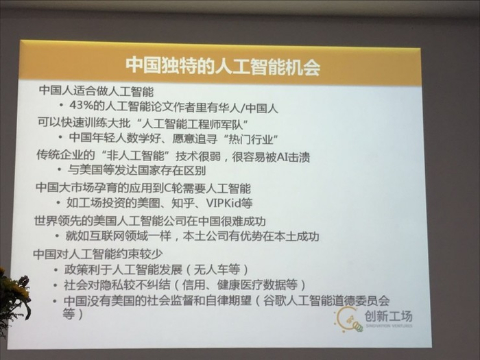 这个创业的模式,它的红利时代已经过去了。当然以后还会有,但是不会像以前那么多。创业的门槛大大提高了,因为人工智能是下一批创业方向,而人工智能创业里面很核心的人物其实是 AI 科学家, AI 的公司没有 AI 科学家是没戏的。