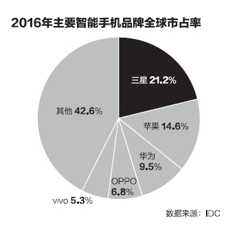 说到第三点“竞争危机下的紧急应对”、“渠道布局”等。最直接的危机面,就是苹果手机在内地的出货被动。华为、OPPO,也包括近来冲刺的金立,在高端机上开始不断蚕食它的份额。截至2016年年末,苹果中国的出货量同比下滑12%,巨头危机很重了。