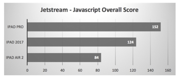 最后,JetStream是一个专注于最先进的Web应用程序JavaScript基准测试套件。而排名基本上也与大部分项目一致,最好的是iPad Pro,新iPad次之。、