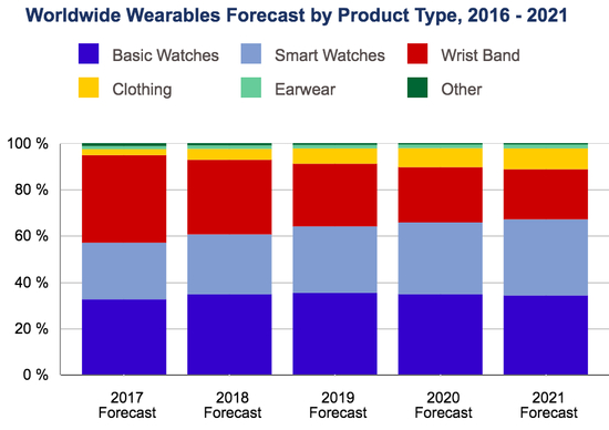 国际数据公司(International Data Corporation)的一份报告预测,在未来的十几年中,虽然智能手表在被越来越多的人接受,但是传统手表的销量不会有明显增长,甚至还有下降的趋势。
