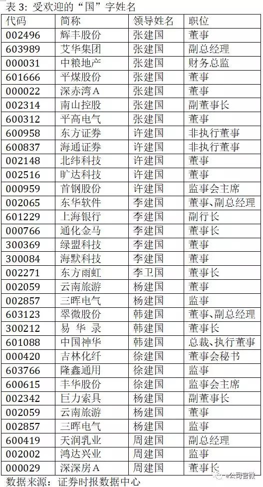 除了上述7位张建国、5位许建国和5位李建国之外,还有何建国、李国庆、王国庆、张国华、王爱国、李卫国各3人,名字为韩建国、欧阳建国、黄国强、林国强、陈国栋......等的董监高人员也均不低于两人。