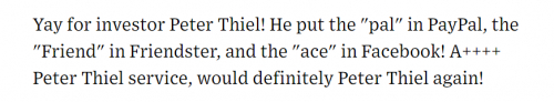 但那些了解蒂尔从斯坦福直到现在20多年时间里所作所为的人们,对于他的本质看的越来越清楚了: