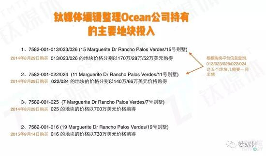 房产豪宅方面,贾跃亭通过Ocean View Drive Inc公司购买的7号、11号、14号、19号、91号别墅,购入总金额超过2000万美金。其中,四块地的资产已被抵押,贷款总额为1970万美元,不过Ocean公司已经易主;贾跃亭的亲属王佳伟通过王的个人名义购买别墅,总计贷款2240万美元。总计贷款超过4200万美金。