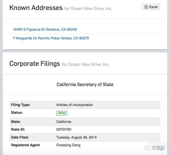 贾跃亭的一套豪宅位于7 Marguerite Dr, Rch Palos Vrd,CA 90275,房屋是贾跃亭借用Ocean View Drive Inc这家公司的名义以700万美元购入,以single family residential的形式入住。Ocean View Drive Inc公司背后则是贾跃亭控制,下面这两个截图可以看到该公司成立于2014年8月26日,而这栋别墅就是在公司成立当月以Ocean View Drive 公司名义进行购买。