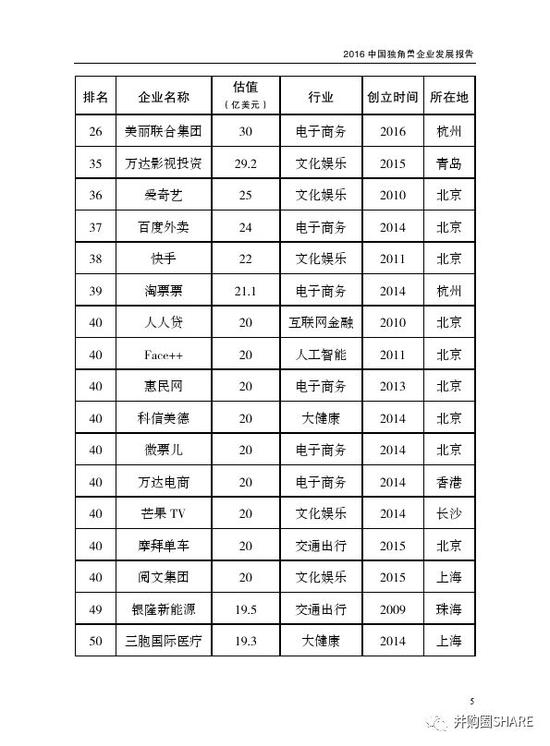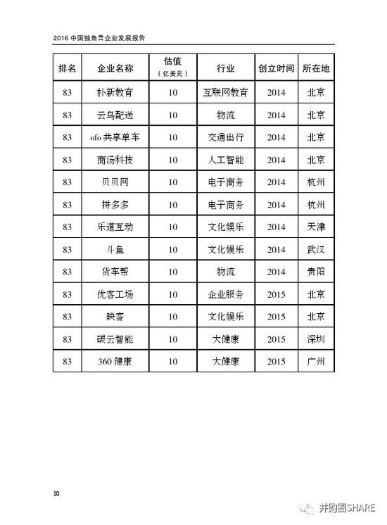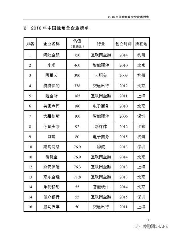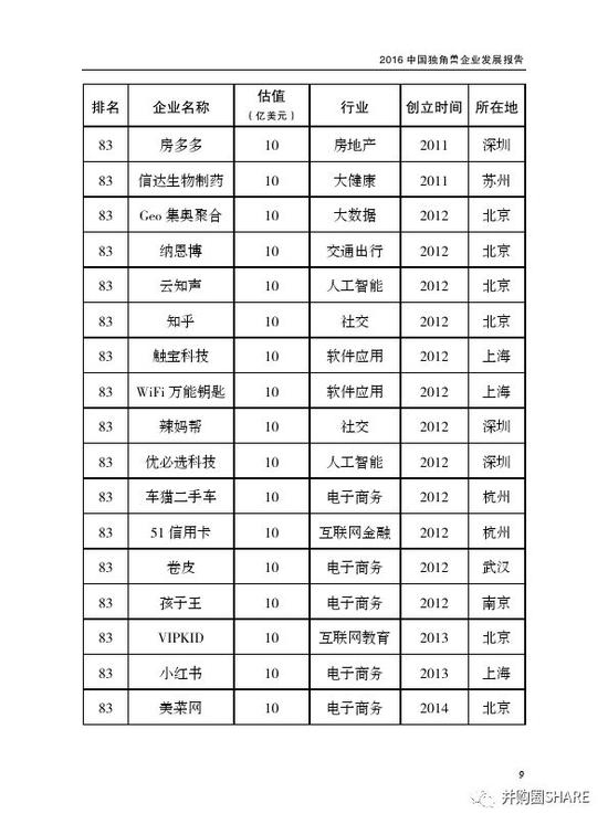 科技部:独角兽名单