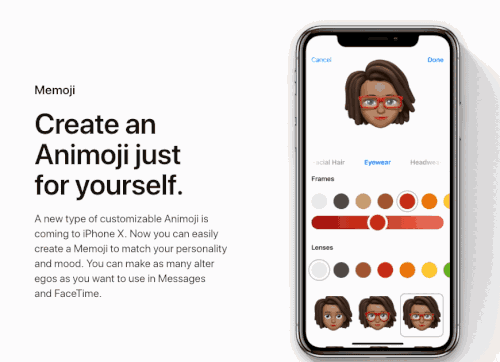 Animoji是动话表情,同步用户脸上的表情,把emoji变成可以动的;而Memoji则更进了一步,让用户可以生成跟自己长得很像的Animoji: