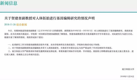然而,11 月 26 日下午,深圳和美妇儿科医院对界面记者回应称“这件事不属实,我们没有接受过相关信息,不知道这件事为什么会上热搜,正在调查”;新浪科技得到的回复也是,项目并非在该医院进行,孩子也不是在该医院出生。