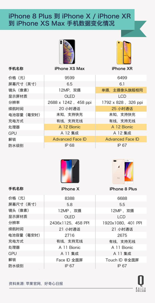 去年的iPhone8/Plus发售后销量不佳,但使用全面屏和OLED的iPhoneX用极大的差异性功能吸引了苹果用户升级。今年情况则不同,同样三款iPhone机型,它们在功能上的升级差异并没有太明显。