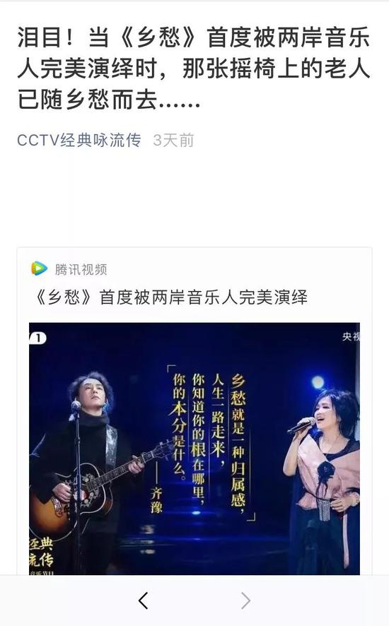 《乡愁》首度被两岸音乐人齐豫与赵照演绎,感动无数人,勾起许多人的乡愁回忆。值此春节之际,在归乡的路上,不妨“读诗成曲”一首乡愁,咏怀故乡。