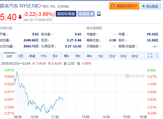 新浪科技讯 3月25日晚间消息,蔚来汽车(NYSE:NIO)盘中股价一度下挫6%再创历史新低,截止北京时间23:56,其股价跌约4%。