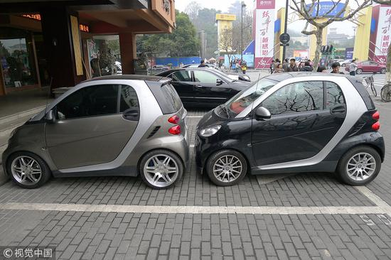 2011年3月14日,杭州某地,两辆smart头尾相接地停进了同一个车位里 图自视觉中国