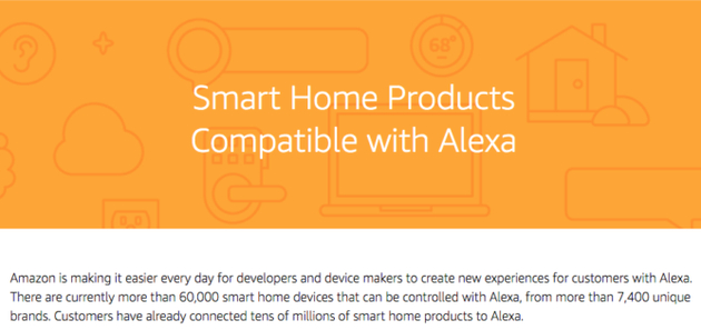根据亚马逊近期更新的Alexa智能家庭兼容性页面显示,目前已经有超过来自7400个以上品牌的6万台智能家居设备接入Alexa语音助手。去年5月的时候,Alexa宣布得到了1.2万台设备的支持,而在去年9月份达到了2万台,这就意味着在这短短的8个月时间内Alexa接入设备数量就增加了2倍。