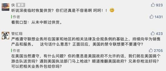 再如,在一篇名为《联想没有996》的文章评论区中,网友认为“联想作为美帝企业当然没有996”,同样被怼: 遵守中华人民共和国劳动法就是美国企业?现在人都怎么了?