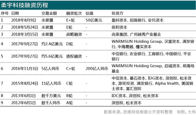 2019年3月15日,柔宇科技又启动新一轮融资。据了解,是IPO前段融资,本次寻求筹资约10亿美元,主要用作扩大销售、营销和研究设施。融资时,公司估值又升高了,至少达到80亿美元。