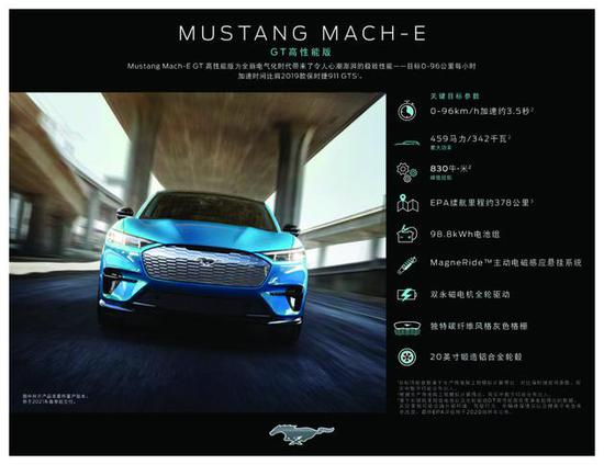 此外,Mach-E还有两个高性能特别版:GT版本能在4秒之内完成0至96公里/小时加速,比保时捷Macan Turbo更快。而GT高性能版的加速时间则在3.5秒左右,与保时捷911 GTS处于同一水平。两款GT版均输出约342千瓦(459马力)的最大功率和830牛·米的峰值扭矩。值得一提的是,Mach-E的电池组经历了零下40度的极端测试,并可利用液冷方式优化极端气候条件下的性能和充电速度。