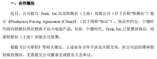 此外,2月3日,宁德时代公告称,公司将于特斯拉开展业务合作。公告称,公司拟与特斯拉签订协议,约定宁德时代将向特斯拉供应锂离子动力电池产品。目前,宁德时代、Tesla,Inc。已签署该协议,尚需特斯拉(上海)签署。