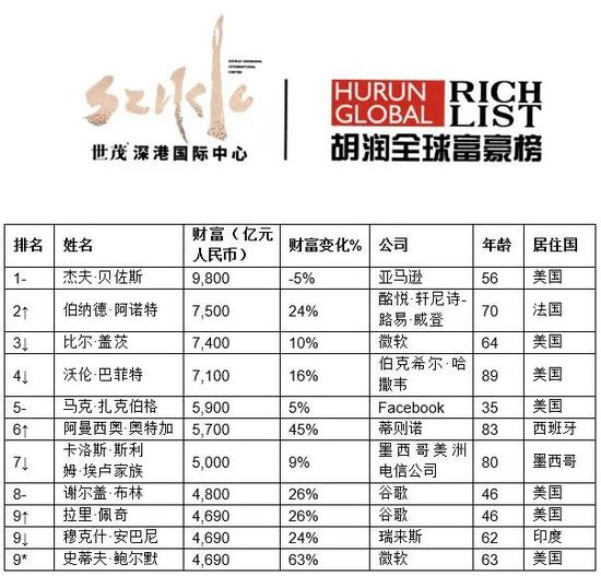 来源:《2020世茂深港国际中心•胡润全球富豪榜》↑对比去年排名上升 ↓对比去年排名下降 –对比去年排名不变