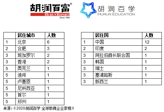 原标题:中国占全球六成多,美国英国竟无一人上榜|《2020胡润百学·全球教育企业家榜》发布