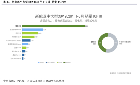 根据数据显示,2020年上半年,在新能源中大型SUV中,理想ONE共享受9666辆,占了销量TOP10中总数的46%。