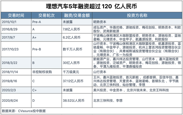 投中网根据理想汽车招股书整理
