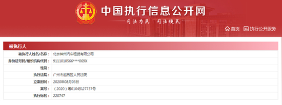 北京神州汽车租赁有限公司成被执行人 执行标的超22万元