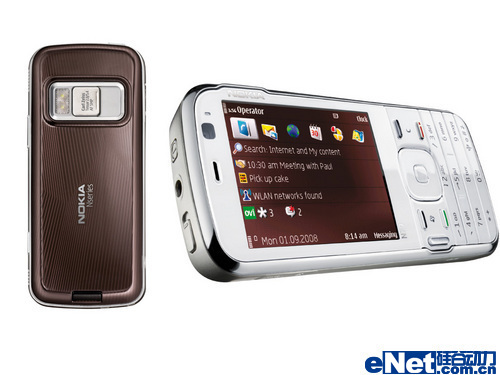 N82采用了一枚500万像索卡尔蔡司认证的摄像头,支持自动对焦,并配备了氙气闪光灯,最大支持2592x1944像素的照片拍摄以及VGA级别的视频录制,表现相当出色,基于Symbian9.2操作系统和S60第三版平台,配合300MHz级别的处理器,在影音娱乐以及商务应用时都能轻松解决。