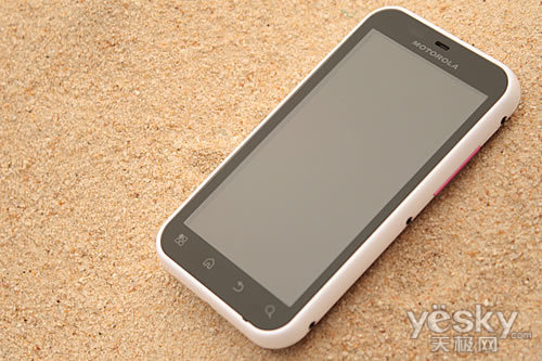 作为一款升级产品,摩托罗拉ME525+在外观上与上一代产品相比,并没有过多的改变,同样的3.7英寸屏幕,同样的HWVGA(854 X 480)分辨率,同样的防刮康宁大猩猩屏幕,整体外形上的区别不大。机身正面所设计的元素并不多,屏幕上方为传统的听筒与光线感应器等元件,摩托罗拉的Logo填补了听筒与屏幕之间的空隙。屏幕下方为四颗热感式触摸键,一体式屏幕让手机形成镜面质感,同时大大降低了手机的接缝构造,让手机在水下环境中,不会因按键而漏水。