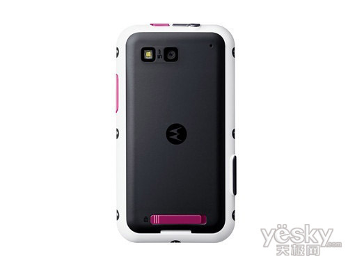 摩托罗拉MB525+在外形方面基本和之前的MB525一样,但是在色彩的搭配上略有不同,该机在机身侧面的按键以及背部电池仓的开关上采用了彩色的色调,而且正面的边缘也不在是黑色而是使用了白色,因此整体看上去不会再有之前“熊猫色”的感觉。