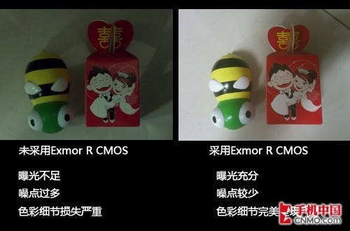 Exmor R CMOS是一项全新的影像传感器技术,主要用于改善小尺寸影像传感器在弱光环境下感光能力不足的问题。传统的小尺寸传感器在夜晚或光线昏暗的室内排出的照 片,往往曝光不足,噪点严重,细节和色彩损失也比较大,大大的影响了视觉感受。而采用了Exmor R CMOS的摄像头,感光能力提升了2倍,并且有效地减少了噪点,即使拍夜景时,也能得到画质出色的照片。