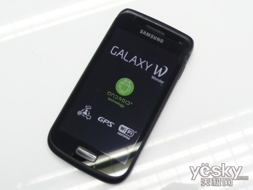 外观方面,三星Galaxy W(参数 论坛 软件) i8150尺寸为115.5x59.8x11.4mm,重约112g,非常轻薄。整机造型十分圆润,几乎没有边角感。正面底端中 央的Home键依然采取实体设计,仅宽度略有缩减。由于定位中端,所以屏幕采用 分辨率为480*800的3.7英寸TFT材质屏,但显示效果与手感还是非常不错的。机身背面有规则的微小粒子凸起,带来不错的防滑效果和舒适的手感。