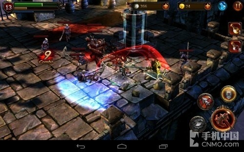 游戏的画面自然不必多说,虽然赶不上PC上同类的大菠萝3,但足以秒杀大菠萝2。无论是招式、人物还是装备刻画都非常不错。同时游戏的玩法也非常创新,并不是割草类游戏的感觉,格挡动作的加入大幅度的增强了游戏的技巧性,让游戏充满挑战。