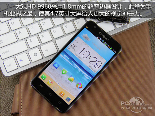 套用一句广告语,“不走寻常路”放在酷派9960身上非常贴切。因此,在国产自主品牌四核手机普遍定价在3000元以内的大背景下,售价近5000元的酷派9960的确很有魄力。虽然在价格方面相对于洋品牌四核手机没有优势,但高价背后所蕴藏的高附加值并没有让酷派9960显得价格虚高。作为一款中国电信定制的高端手机,酷派9960可谓内外兼修,除了支持符合商务人士需求的CDMA2000+GSM 双卡双待功能以外,外观设计亮点纷呈,表现在单边1.8毫米超窄边框(略大于魅族MX2)、8.8毫米纤薄机身以及SoftTouch精雕实纹机身等多个方面。