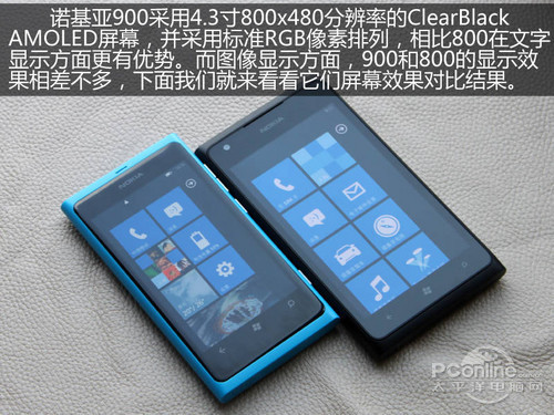 诺基亚Lumia 900采用4.3英寸屏幕和标准的RGB像素排列方式,但分辨率相对不高,画质细腻程度不及顶级Android智能手机。由于WP7手机不支持双核处理器,但无论是主频为1.4GHz的高通骁龙APQ8055单核处理器还是512MB运行内存都显得非常普通。尽管如此,由于WP7手机不像Android智能手机那样对硬件要求比较高,诺基亚Lumia 900可以确保各类WP7应用软件流畅运行。