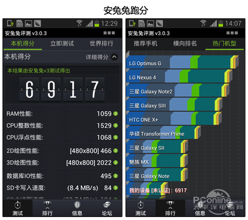 三星GALAXY S3 Mini通过了Wi-Fi联盟认证,它将搭载意法爱立信NovaThor U8420双核处理器,配备4英寸WVGA级Super AMOLED触控屏,显示效果还是不错的。下面是该机的跑分截图,以供大家参考。