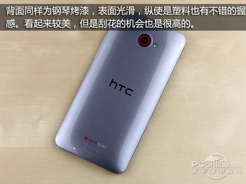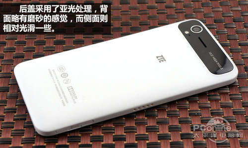Grand S的机身厚度为6.9mm,在1080p四核手机中已经属于“超薄”了。而机身重量也只有110克左右,使得手机非常轻巧。屏幕面板和后盖的契合方式以及后盖的表面处理方式,和HTC One X有相似之处,这种设计明显提升了整机的美感,同时兼顾良好的握持感。后盖凸起部分为一款内部有条状花纹的有机玻璃,有效地避免摄像头部分的磨损。