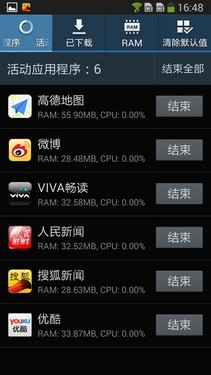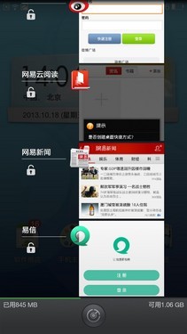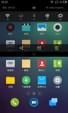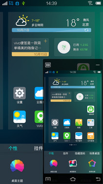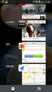 主界面风格没有太大变化,与之前的版本保持一致,在任何界面长按Home键都可以呼出后台页面。打开下拉菜单,可以看到多窗口、浮窗预览、手势感应、智能休眠、智能滚动都有相应的快捷开关。