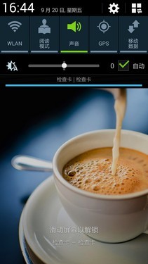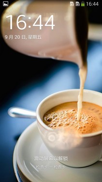此次GALAXY Note3采用了最新的Android 4.3系统,整套UI都进行了二次开发。乍一看它与之前的版本没有太大差别,但是在很多细微的地方还是有着不小的改进。就拿锁屏画面来说,同样是水波纹解锁,GALAXY Note3就增加了全新的屏幕感应技术,与屏幕保持一定距离,轻微晃动手指之后,屏幕的水波纹效果也会随之抖动。(注意观察左侧图片杯子边缘的波动效果)。
