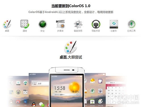 简单的可以看出,Color OS并没有追随现如今扁平化的风潮,而是继续坚持着拟物化的风格。跟之前的Find 5相比,主界面所有功能图标都进行了重新设计,无论拍照功能的镜头还是设置功能的齿轮,都极富科技感和时尚品味。